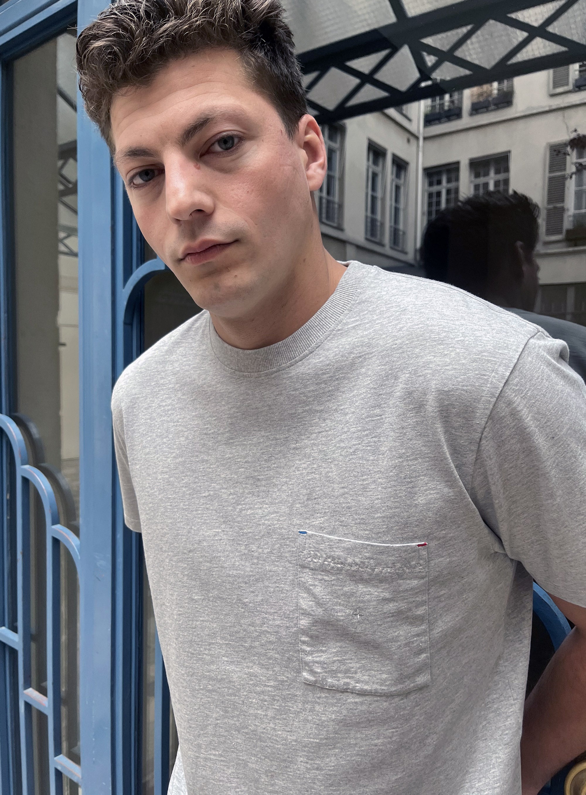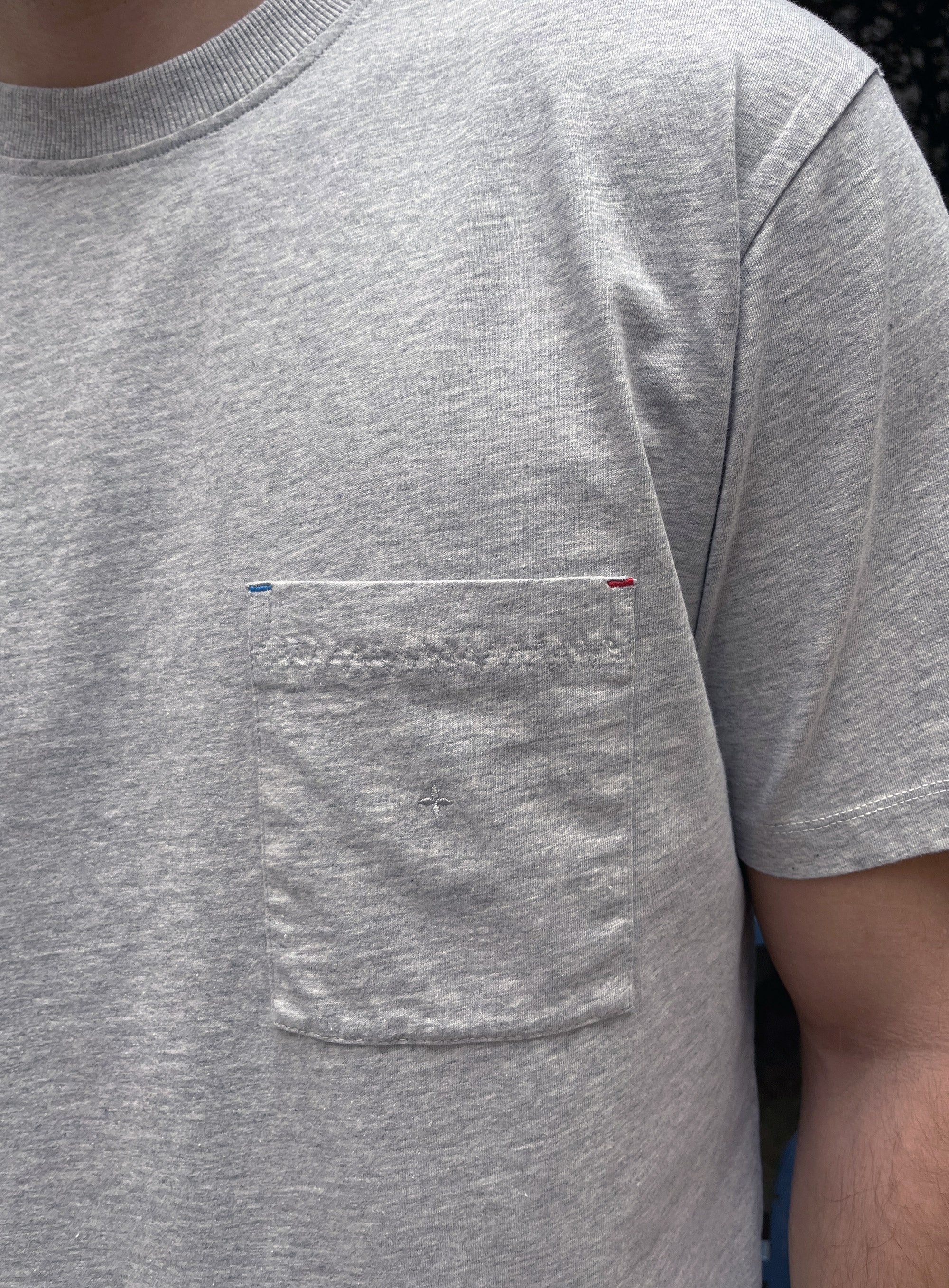 A tone-on-tone embroidery of the “Star” logo discreetly marks the tee in the center of the pocket.
